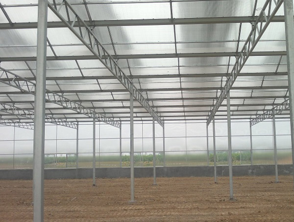 陽(yáng)光板溫室覆蓋材料為聚碳酸脂中空板。結(jié)構(gòu)上多采用雙坡面大屋頂結(jié)構(gòu),也有采用拱型結(jié)構(gòu)的。采用熱鍍鋅鋼制型材骨架。其特點(diǎn)是結(jié)構(gòu)輕盈,耐撞擊,防結(jié)露(防結(jié)露涂層工藝),荷載性能好,保溫性能優(yōu)良,經(jīng)久耐用,美觀大方。比其他覆蓋材料的溫室節(jié)能40%以上。